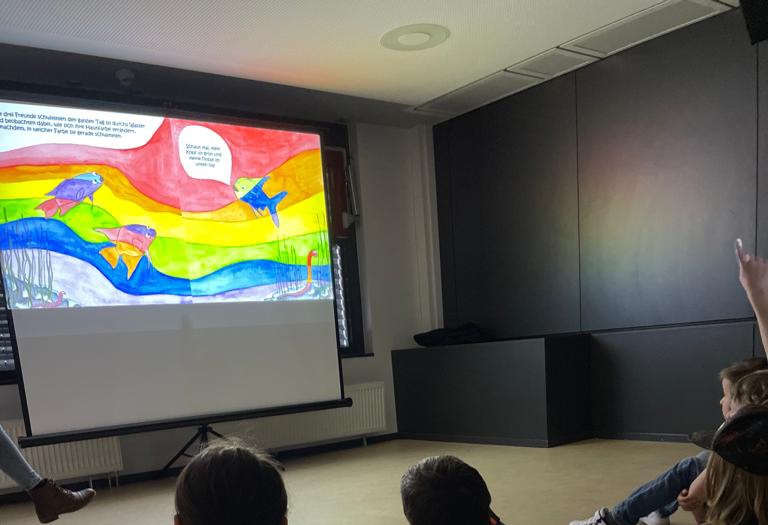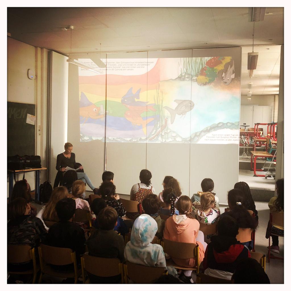 gab es am 12. Mai 2023 in den Klassen 2a und 2b der Georg Büchner Schule in Frankfurt am Main zu sehen, als die Kinder mit mir gemeinsam in Bulajbus bunte Unterwasserwelt abtauchten.